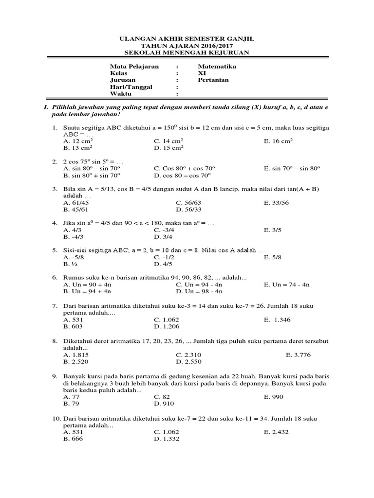 Kelas Matematika Xi Ipsi Pilihan Ganda1 Beda Dari Barisan 2 11 20 29 38 Adalah A 6 B Brainly Co Id