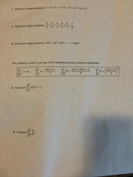 Solved Write Each Of The Following In Summation Notation Chegg Com