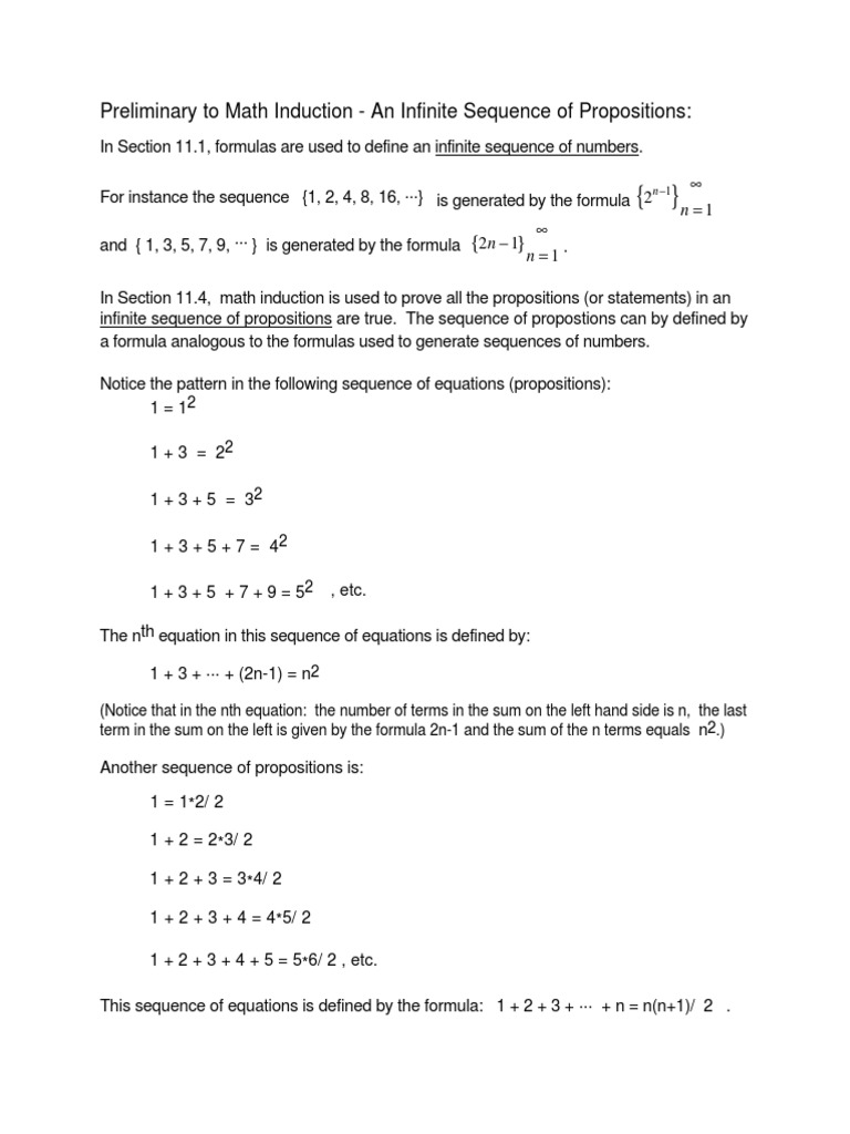 Preliminary To Math Induction An Infinite Sequence Of Propositions