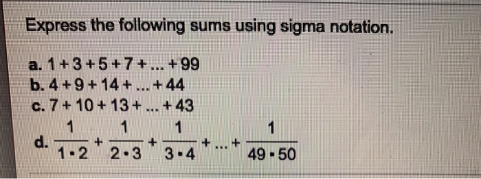 Solved Express The Following Sums Using Sigma Notation A Chegg Com