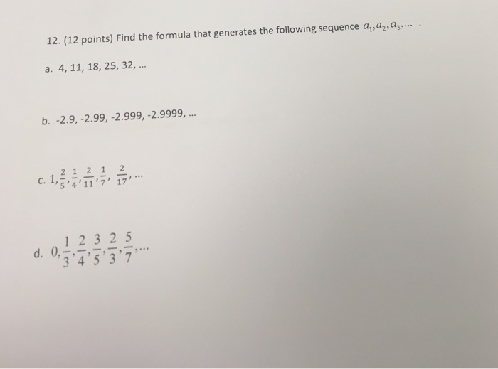 Solved Find The Formula That Generates The Following Sequ Chegg Com