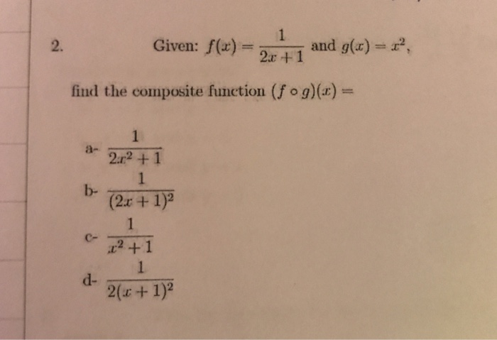 Solved Given F X 1 2x 1 And G X X 2 Find The Co Chegg Com