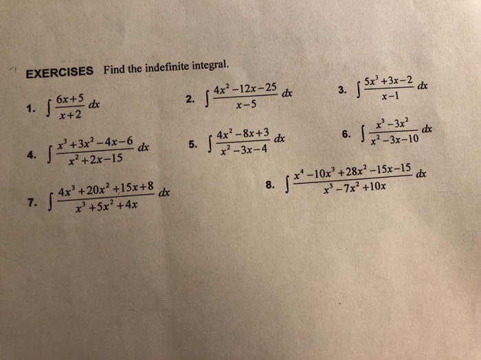 Solved Exercises Find The Indefinite Integral 6x 5 X 2 4 Chegg Com