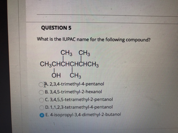 Solved Question 5 What Is The Iupac Name For The Followin Chegg Com
