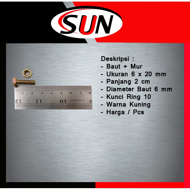 Baut Mur Kuning 6 X 20 Mm 2 Cm Kunci Mur 10 Mm Shopee Indonesia