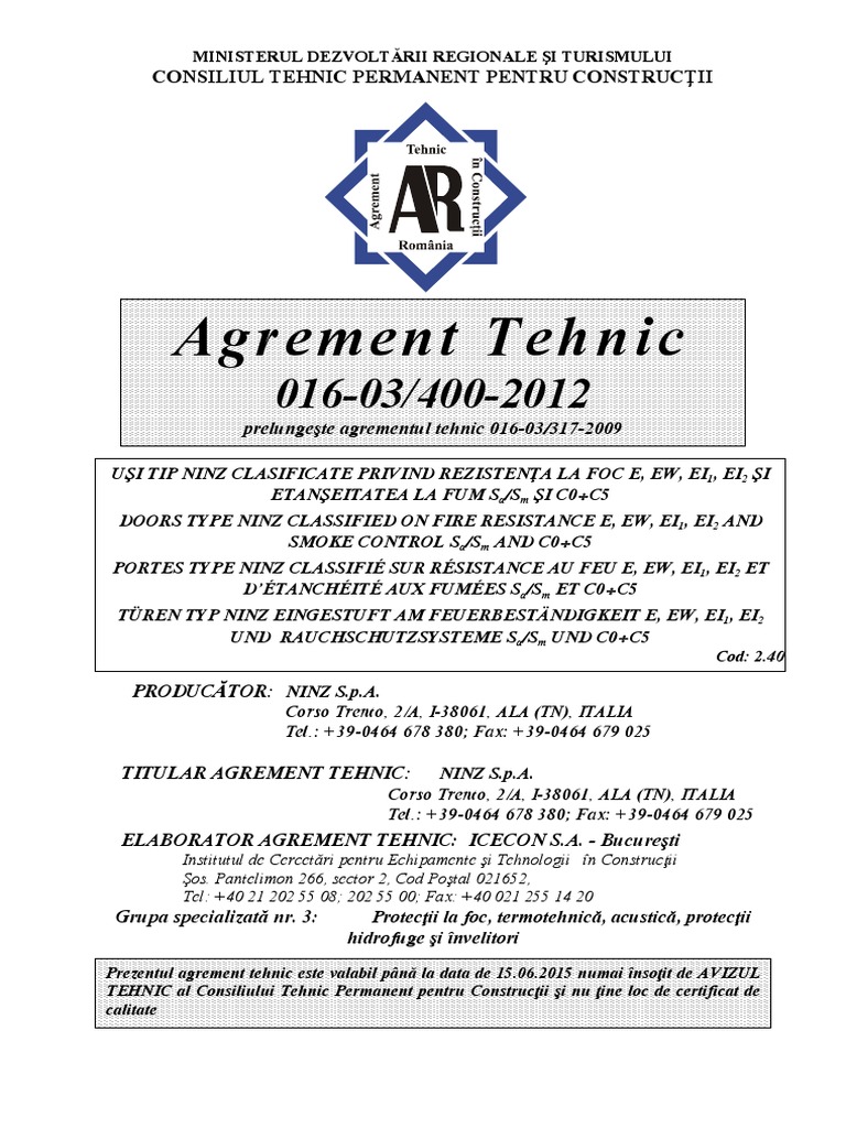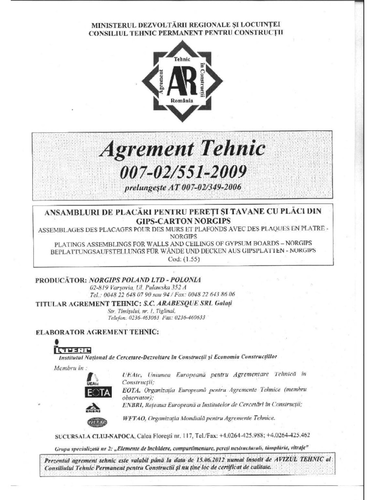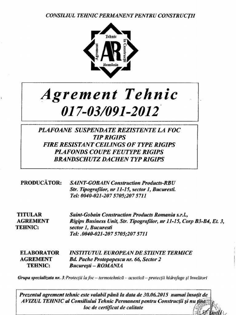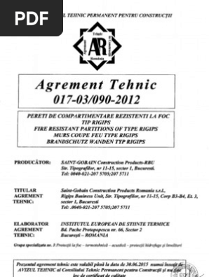 Agrement Tehnic Rigips Rezistent La Foc