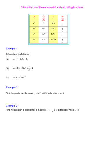 Differentiation Of The Exponential Function E X And Natural Logarithms Lnx Exponential Function E X Ppt Download