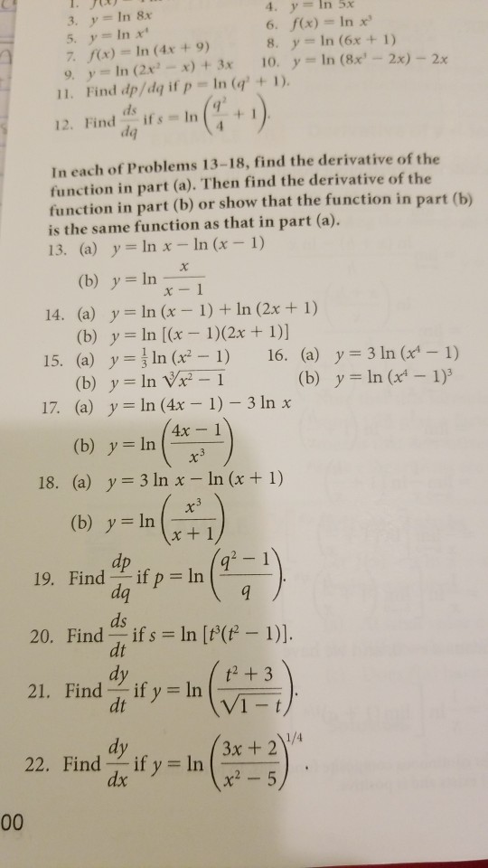 Solved 4 Y In 5x 6 F X In X 8 Y Ln 6x 1 3 Y Ln 8 Chegg Com