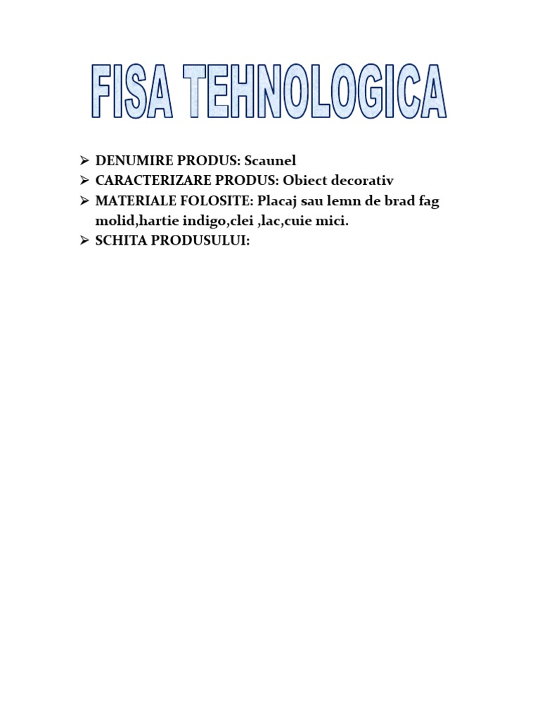 Vreau Urgent Un Model De Fisa Tehnologica A Unui Produs Din Lemn Finit Brainly Ro