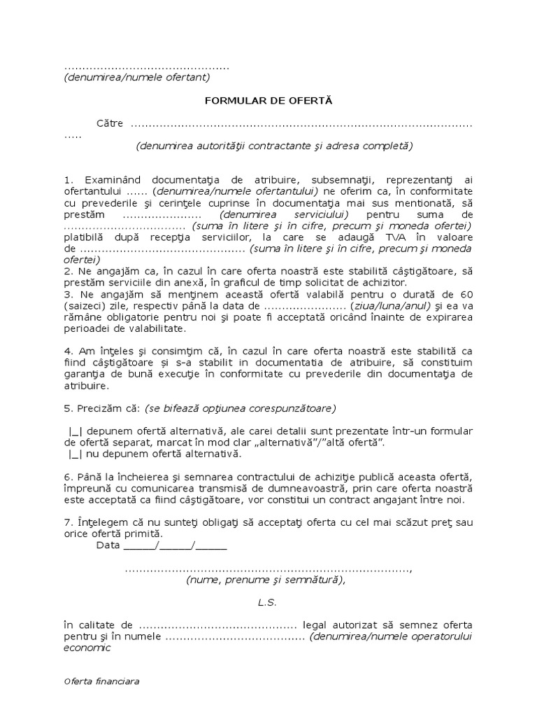 Formular Oferta De Pret Model