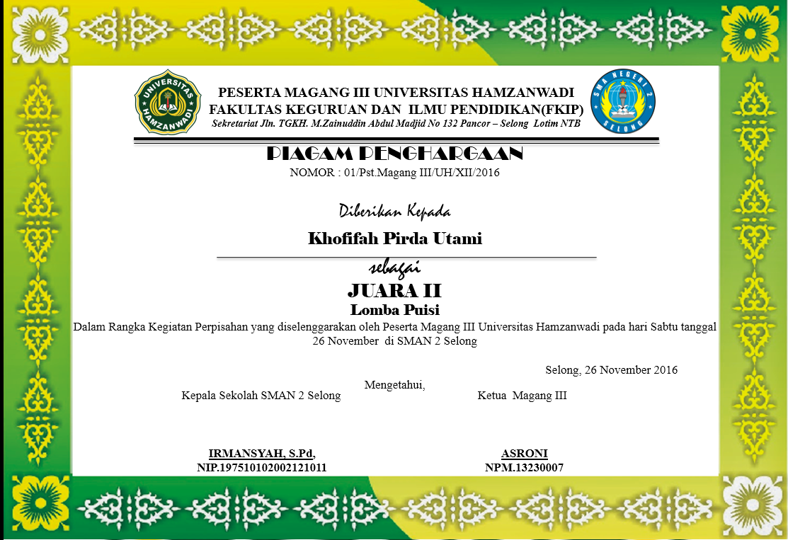 Asroni Maulana Contoh Piagam Penghargaan