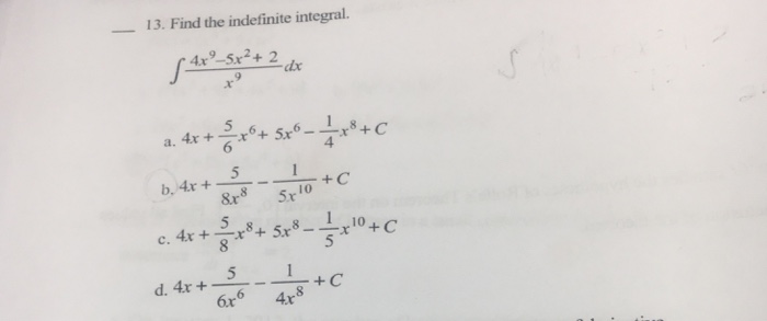 Solved Find The Indefinite Integral Integral 4x 9 5x 2 Chegg Com