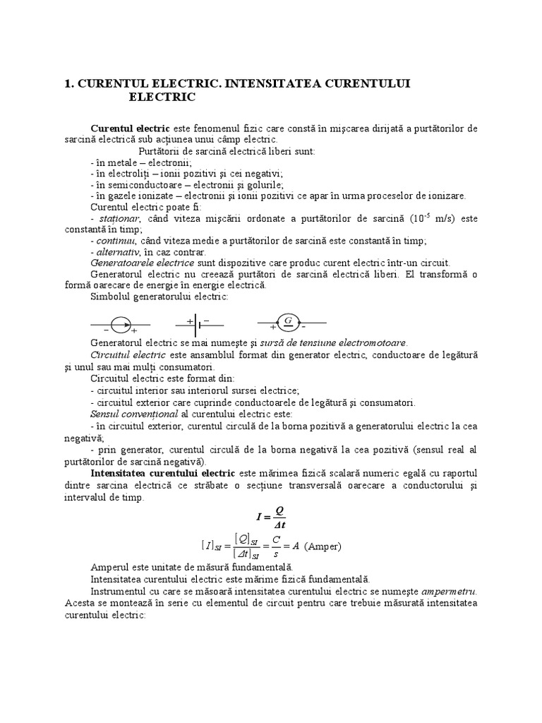 1 Curentul Electric Intensitatea Curentului Electric
