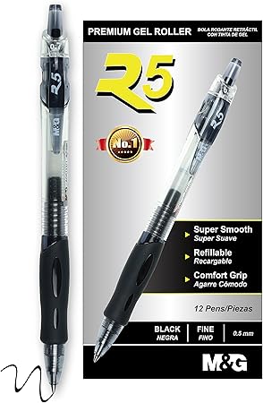 Amazon Com M G R5 Retractable Gel Ink Roller Ball Pens Fine Point 0 7mm Gel Ink Ballpoint Pens Black Ink Refillable Premium Comfort Grip 12 Pack Agp12371 Office Products