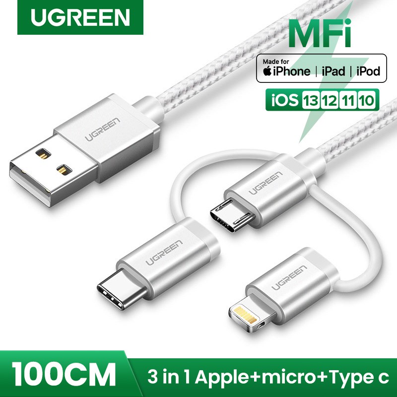 Ugreen Original 3 In1 Braided Kabel Charger Micro Usb Type C Mfi Fast Charging For Iphone Android Shopee Indonesia