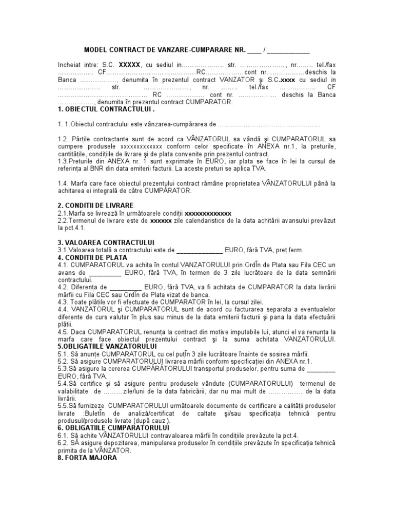 Model Contract De Vanzare Cumparare Produse Laurentiu Mihai Doc