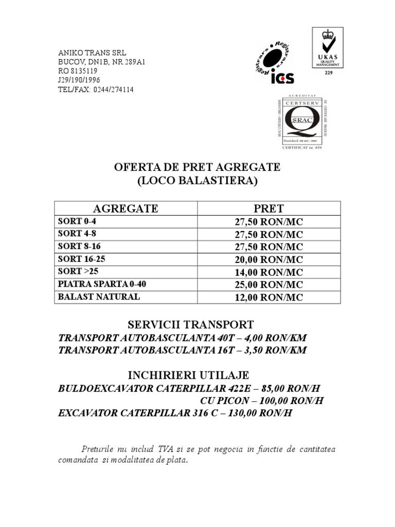 Oferta De Pret Agregate Loco Balastiera Servicii