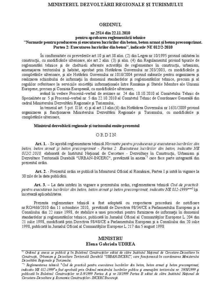 Ne 012 2010 Executarea Lucrarilor De Beton Ovidiu Filip Academia Edu