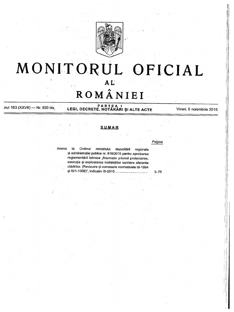 I 9 2015 Normativ Privind Proiectarea Executia Si Exploatarea Instalatiilor Sanitare Aferente Cladirilor M D R A P Emag Ro