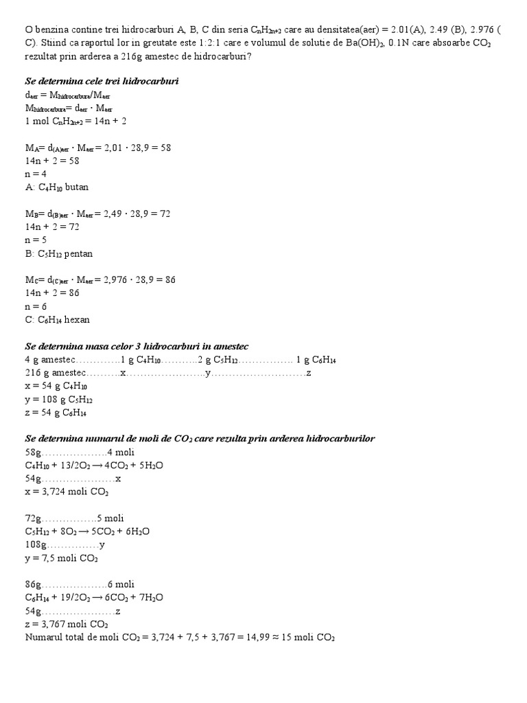 O Benzina Contine Trei Hidrocarburia B Si C Din Seria Cnh2n 2 Care Au Densitatea Fata De Brainly Ro