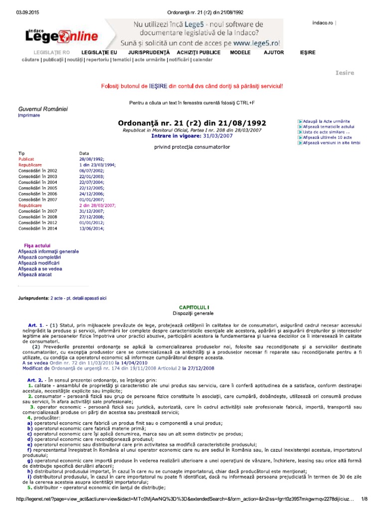 Ordonanta Guvernului Nr 21 Din 21081992 Republicata Si Actualizata La 09042016 Pdf