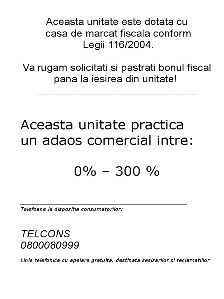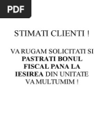 Vă Rugăm Solicitaţi Si Păstraţi Bonul Fiscal Pană La Iesirea Din Unitate