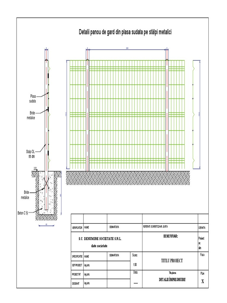 Detaliu Imprejmuire Panou Gard Pe Stalpi Metalici Si Plasa De Sarma