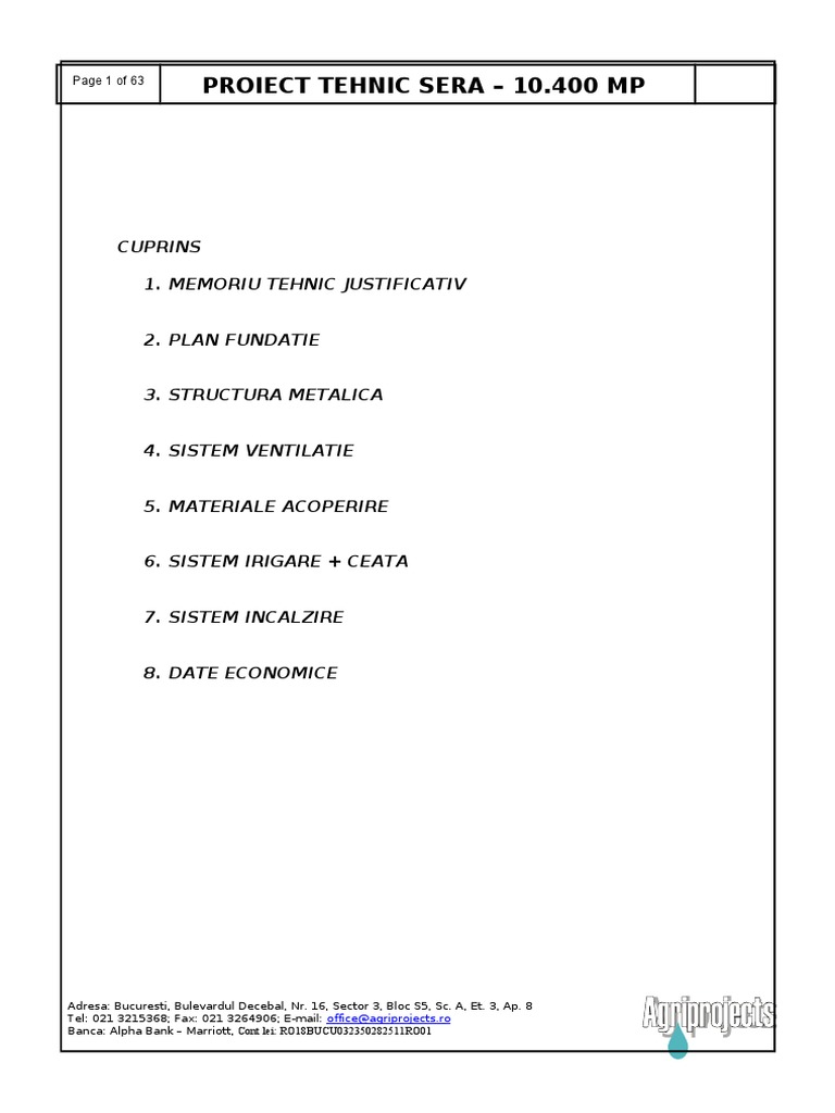 Proiect Tehnic Sera 10 000 Mp