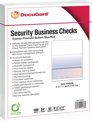 Docugard 04517 8 1 2 X 11 Blue Marble Bottom 11 Feature 24 Standard Security Check Paper 500 Sheets Ream