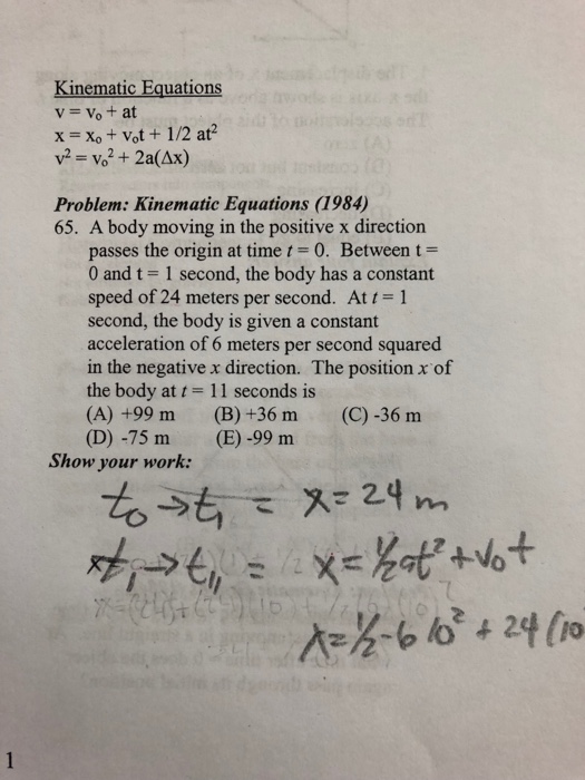 Solved Kinematic Equations X Xo Vot 1 2at2 Problem Kin Chegg Com